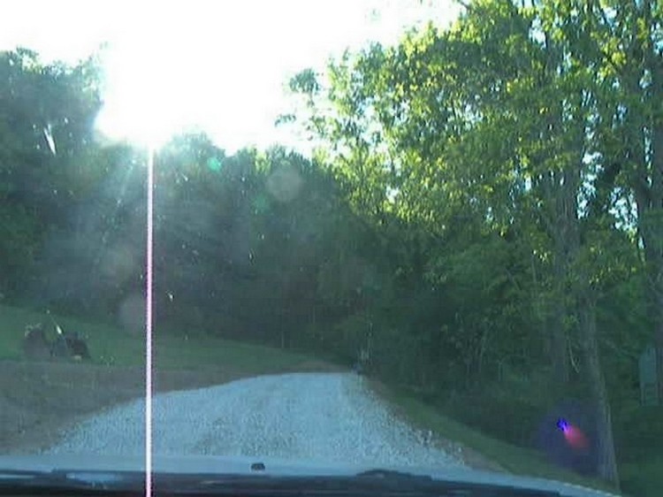 ahead on the left, just at the curve, to see our gray gravel driveway